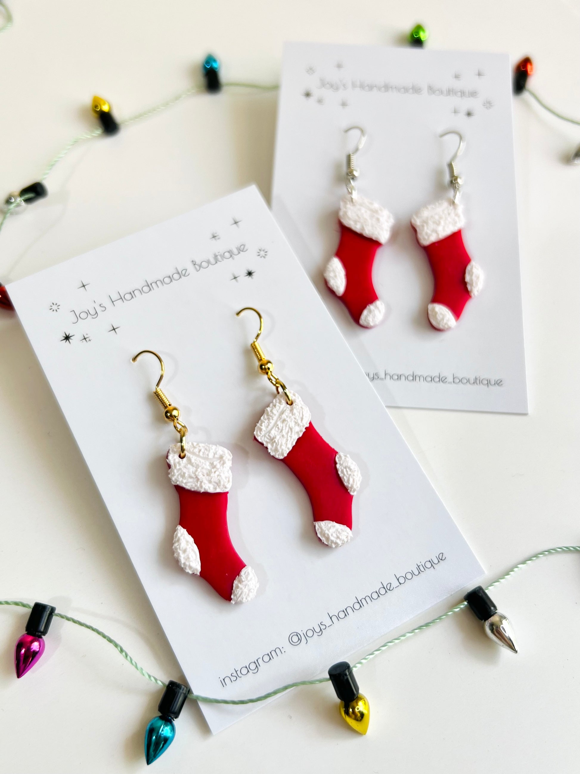 2D Christmas Stocking Earrings | Handmade from polymer clay