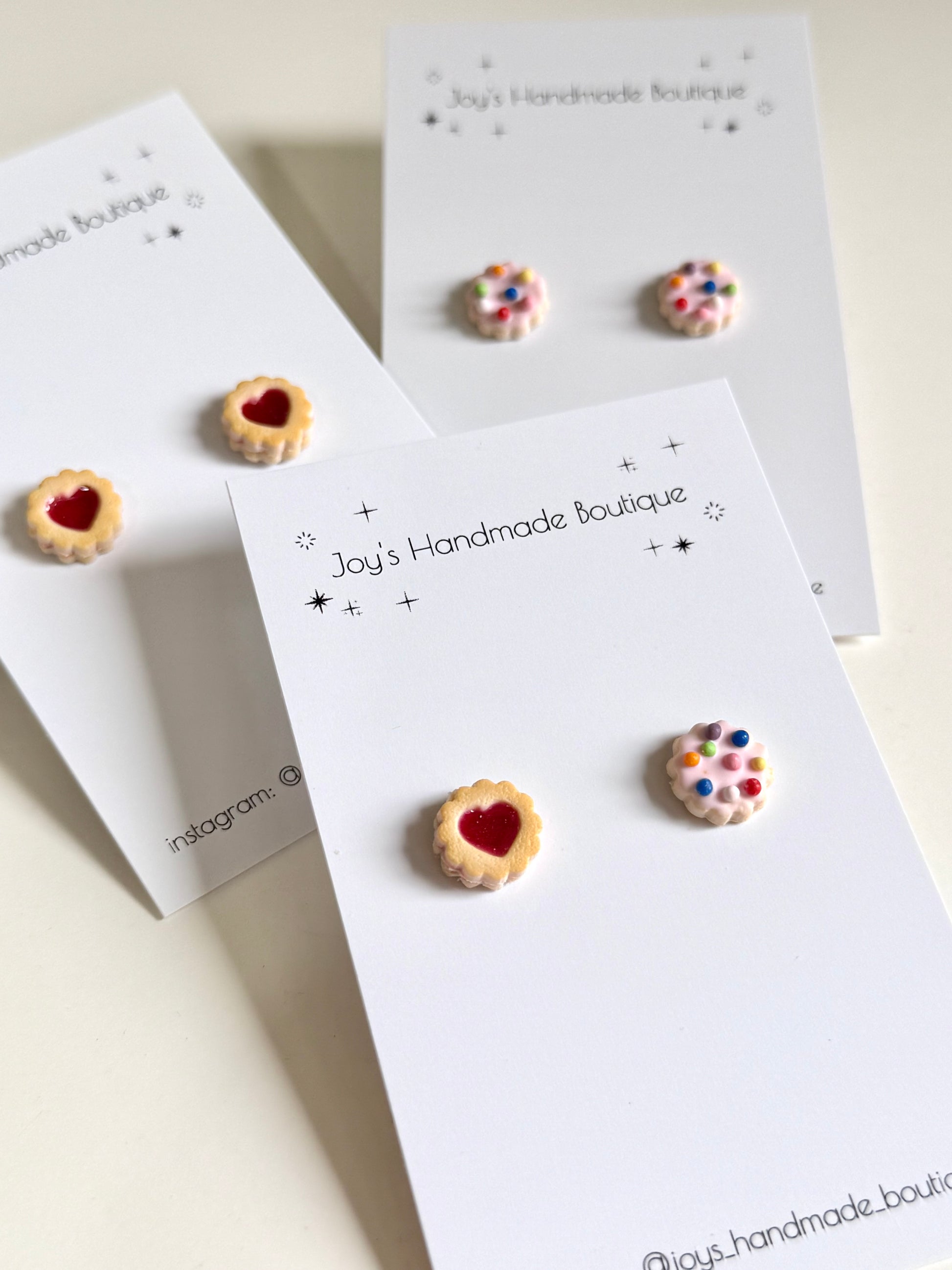 Mini Biscuit Stud Earrings - Handmade from polymer clay