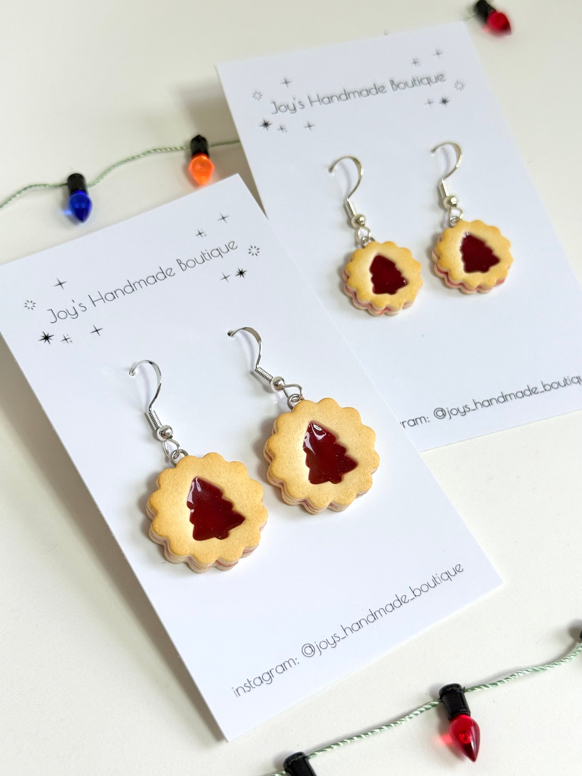 Christmas Tree Jam Biscuit Earrings | Handmade from polymer clay