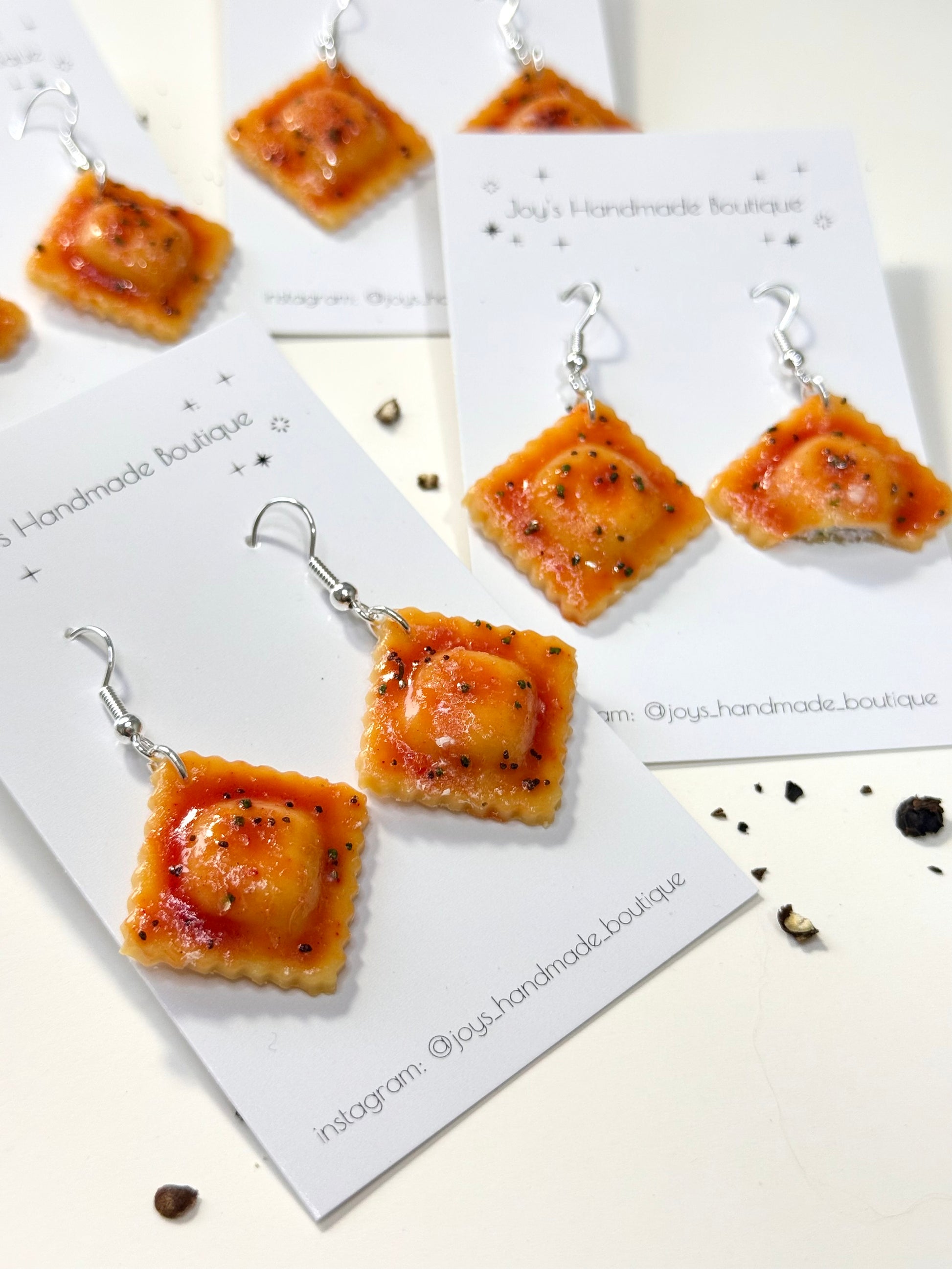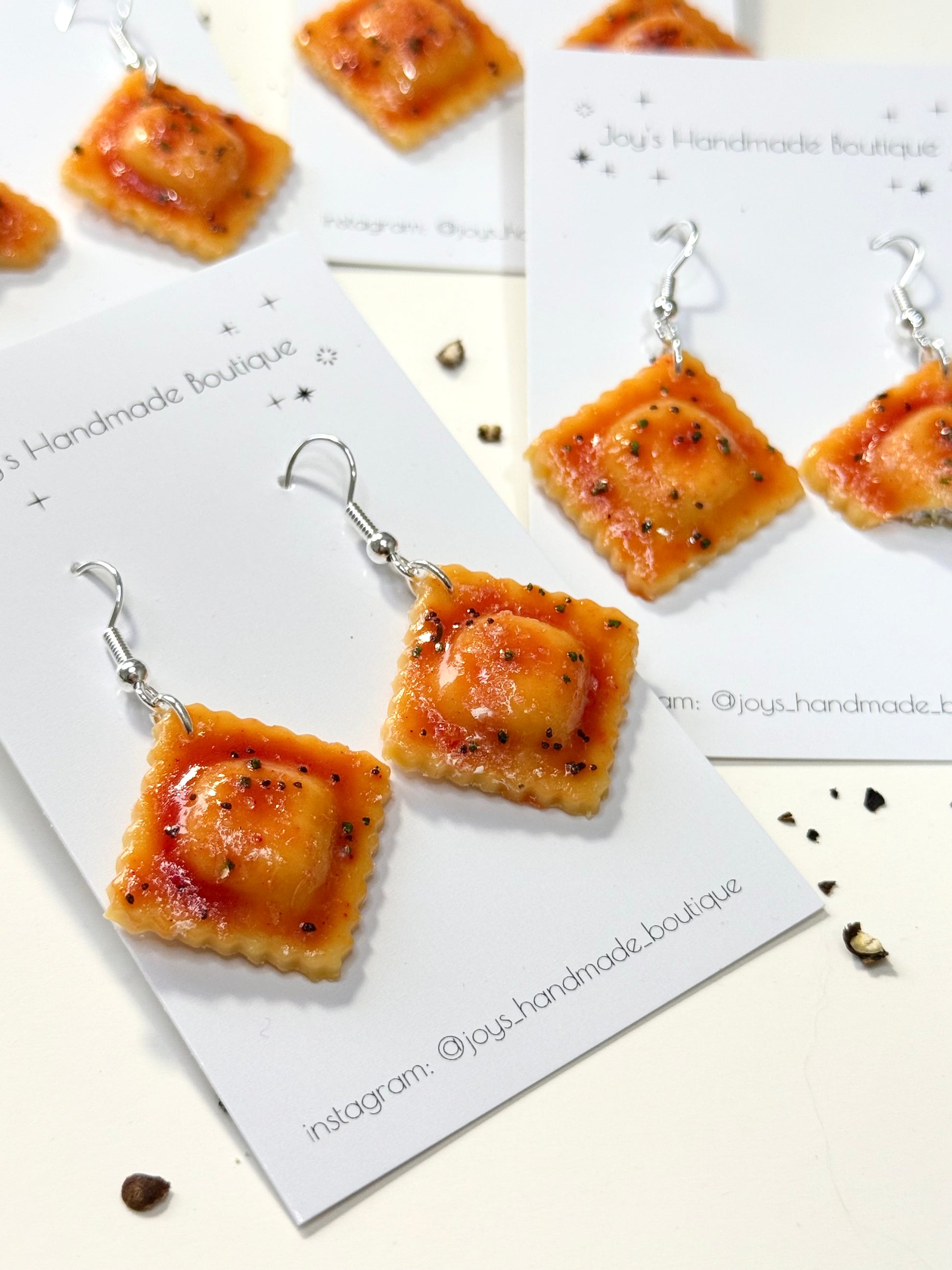 Ravioli Earrings/Keychain - Handmade from polymer clay