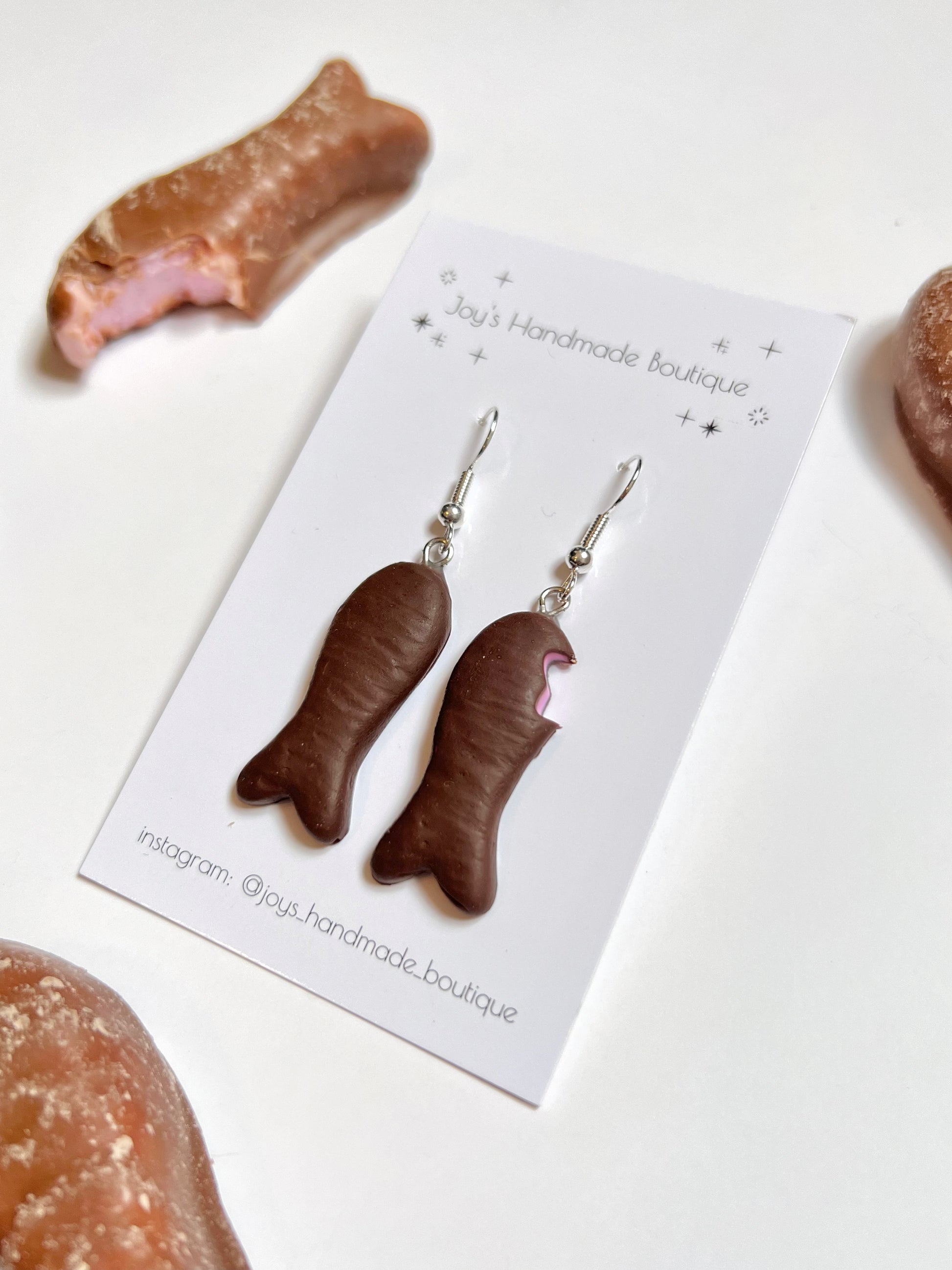 Chocolate Fish Earrings (With Bite) | Handmade from Polymer Clay