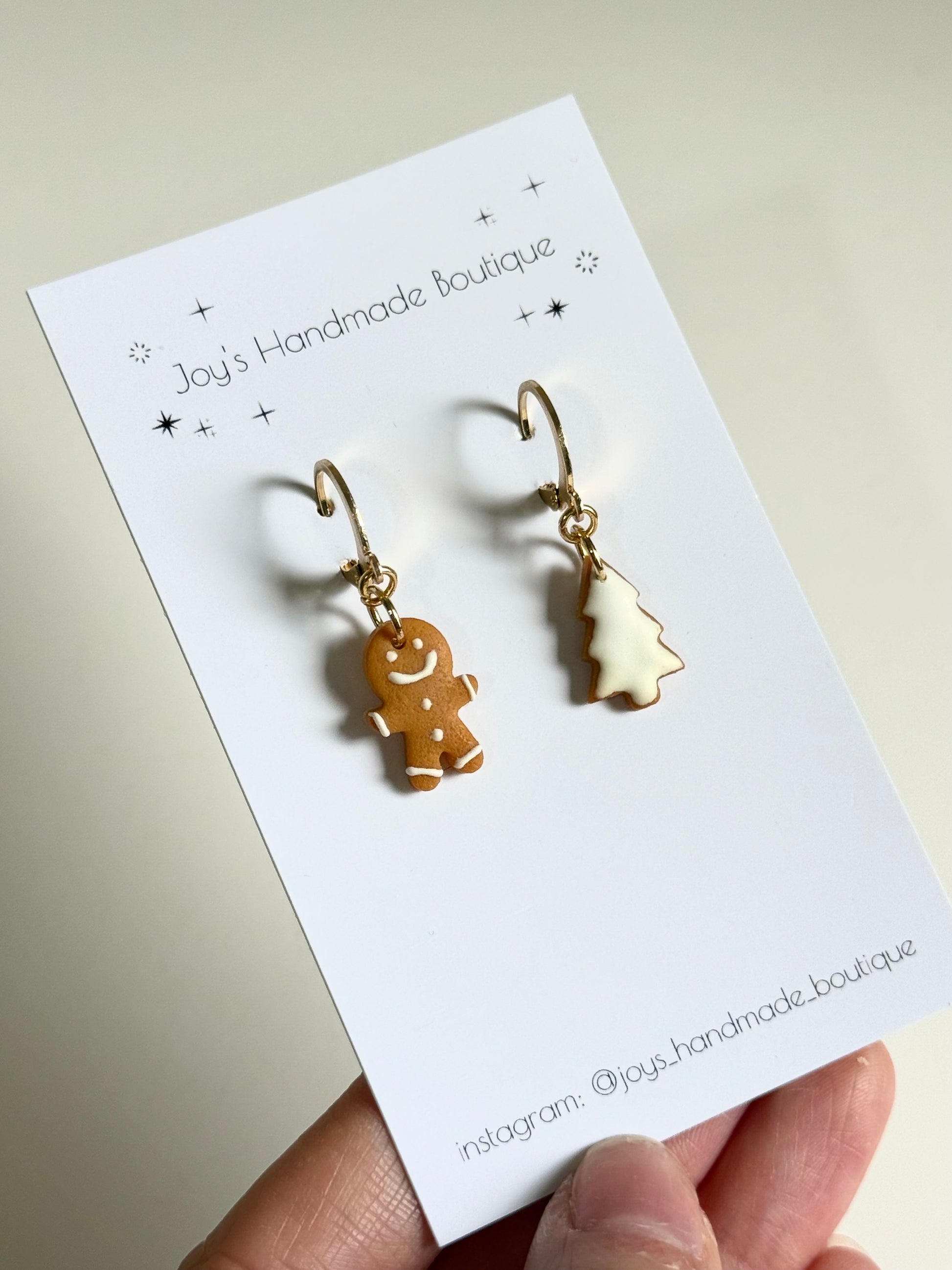 Mismatched Mini Gingerbread Huggie Earrings - Handmade from polymer clay