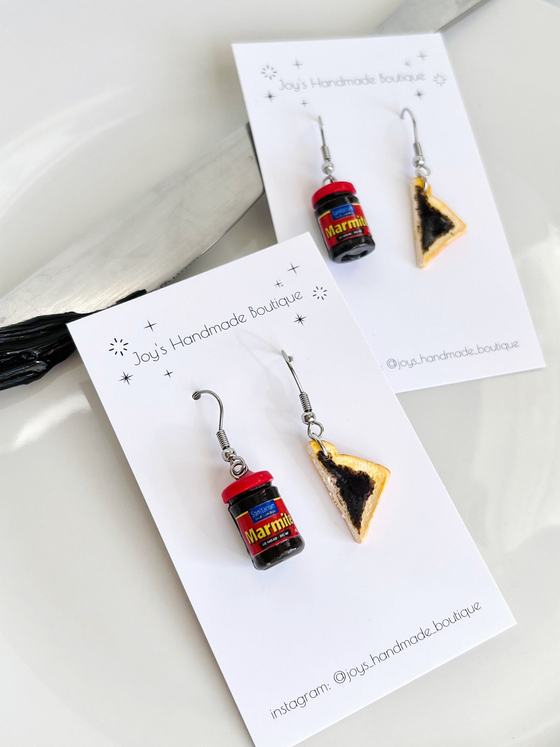 Marmite/Vegemite on toast Earrings | Handmade from polymer clay