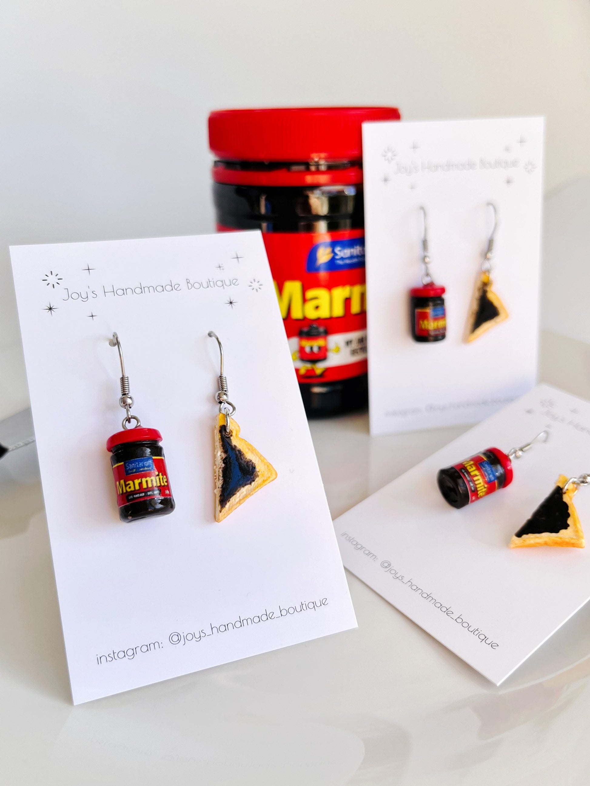 The little jars of marmite and Vegemite are completely 100% handmade by me out of clay! First I make the jar itself, then the lid, then I assemble everything and I put on a label. Due to this please be aware that there may be some imperfections.