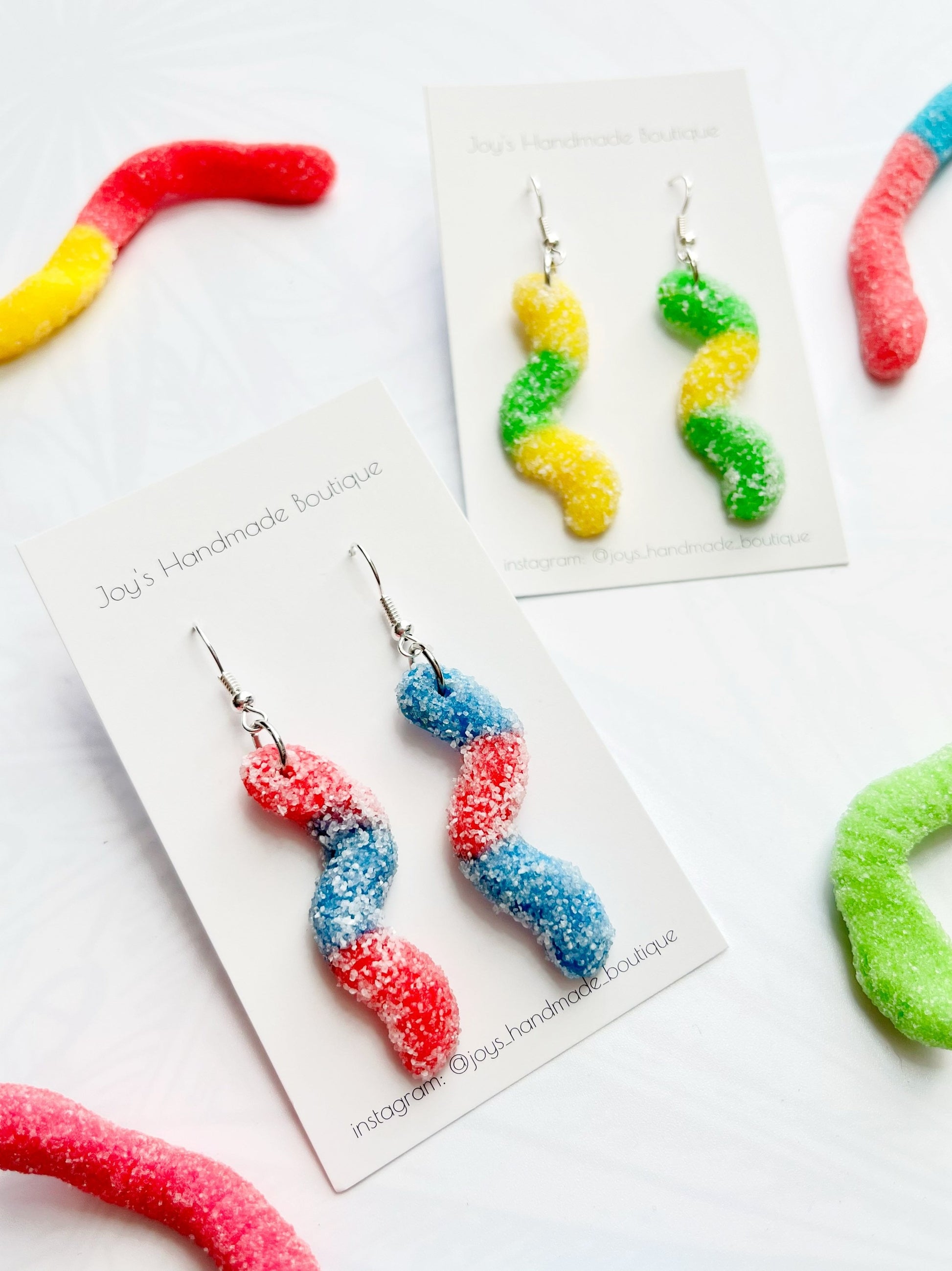Sour Gummy Worm Earrings | Handmade from polymer clay