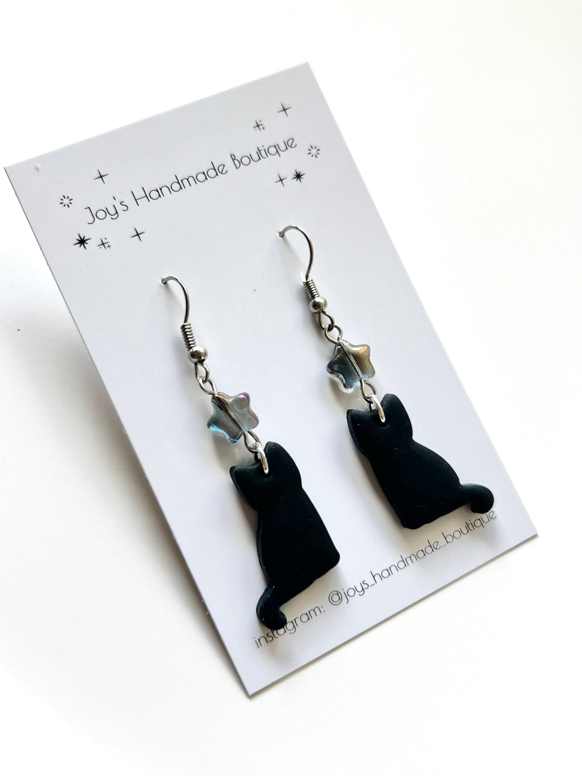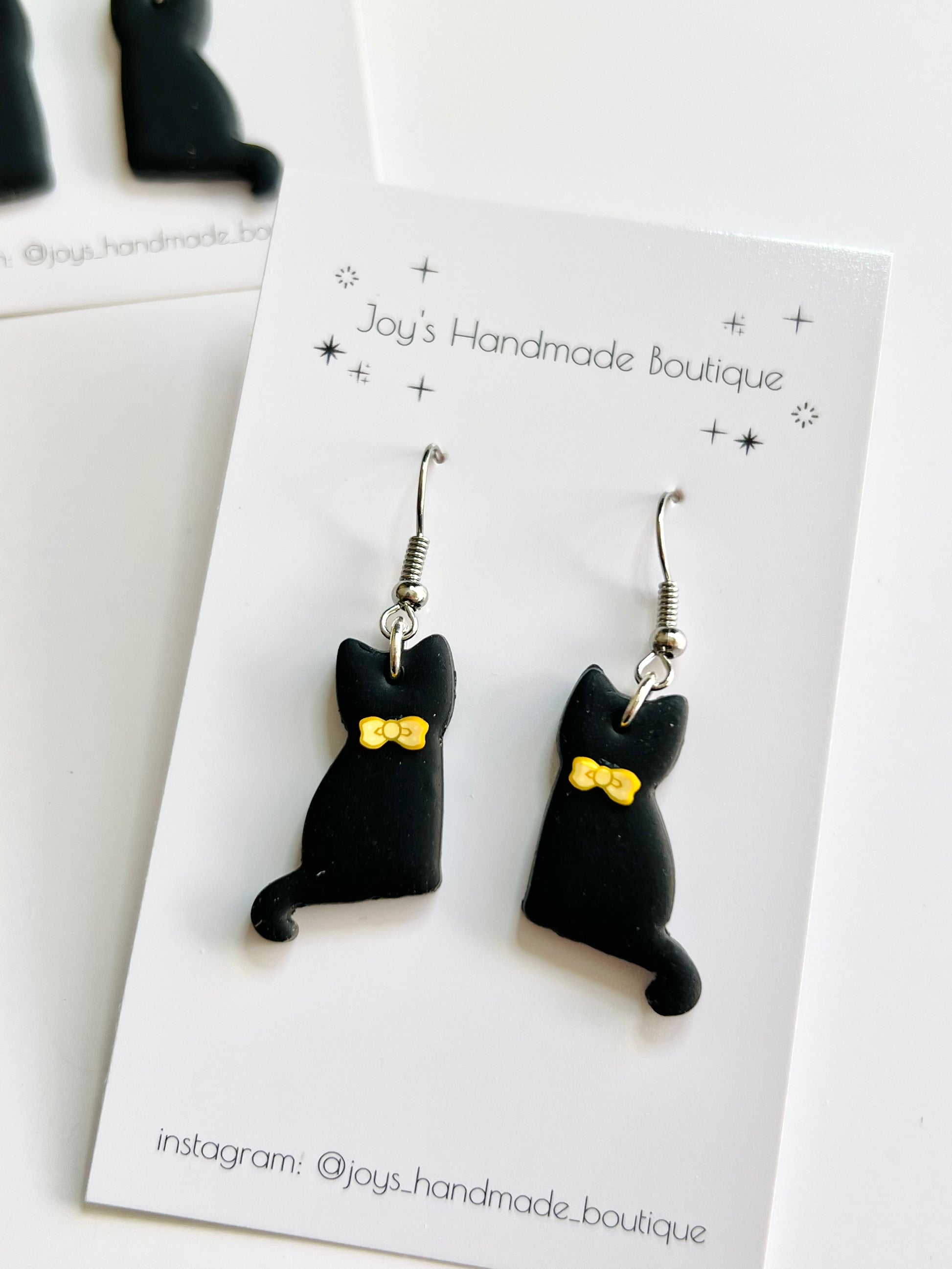 Dangly Black Cat Earrings | Handmade from polymer clay